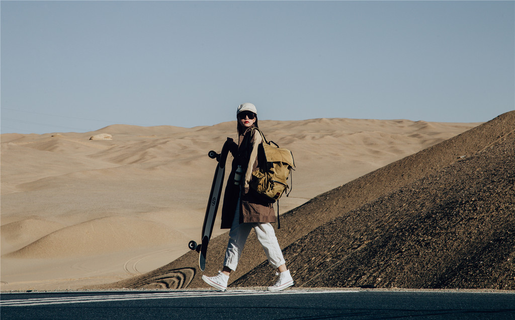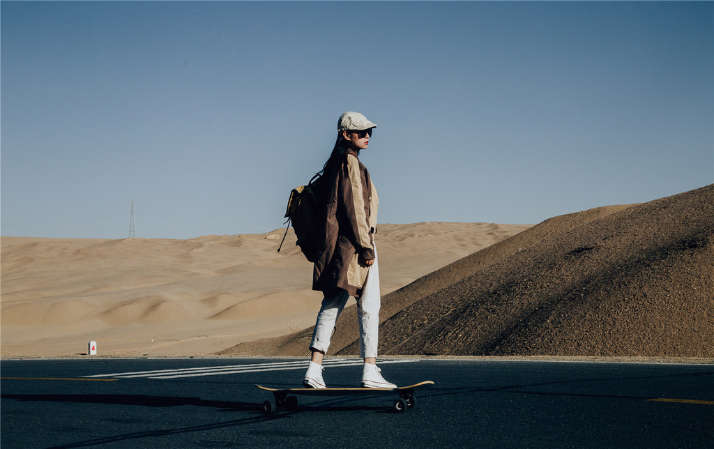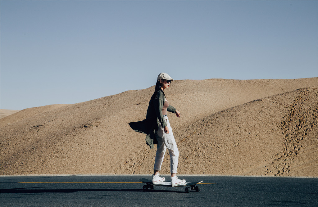 踩着滑板挑战“U型公路”