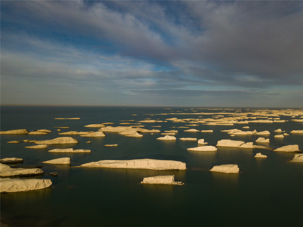 将柴达木雅丹地貌群的低洼处淹没