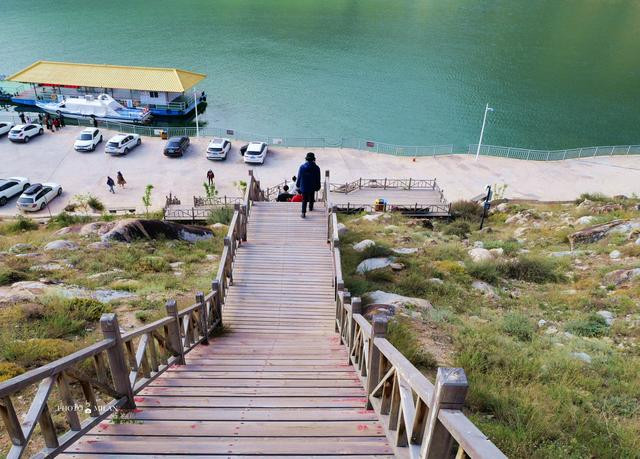 第二天上午,游览龙羊峡黄河大峡谷景区,进入景区走多层蜿蜒曲折的木台阶,到龙羊峡峡谷码头,从上面俯瞰黄河水清澈碧绿,