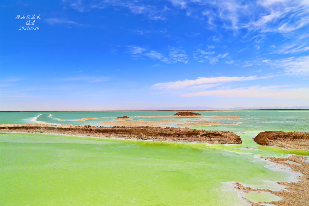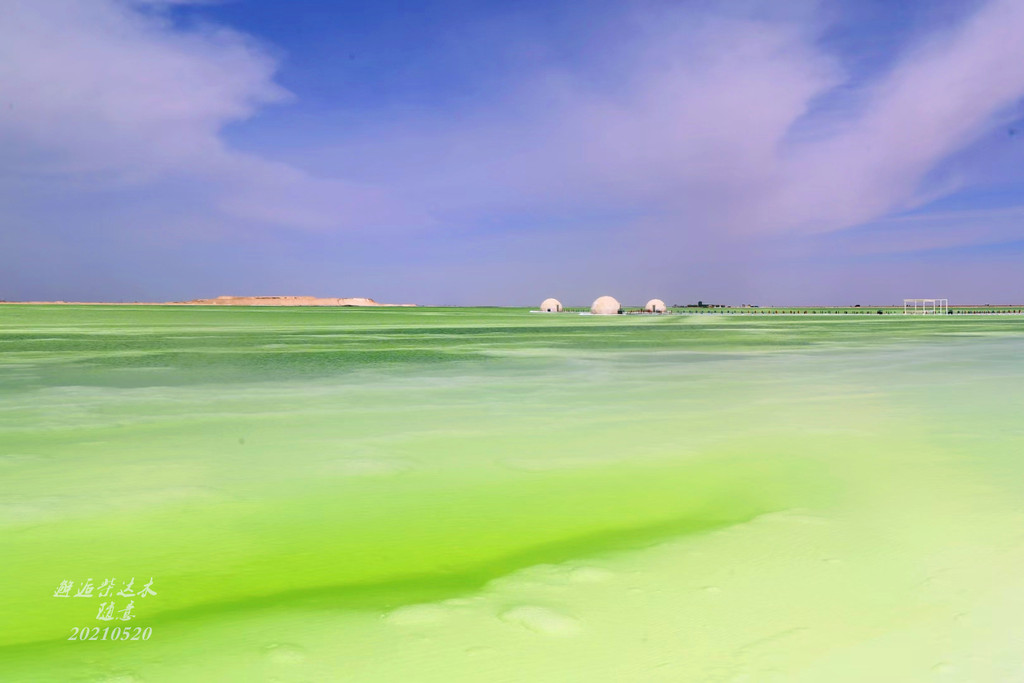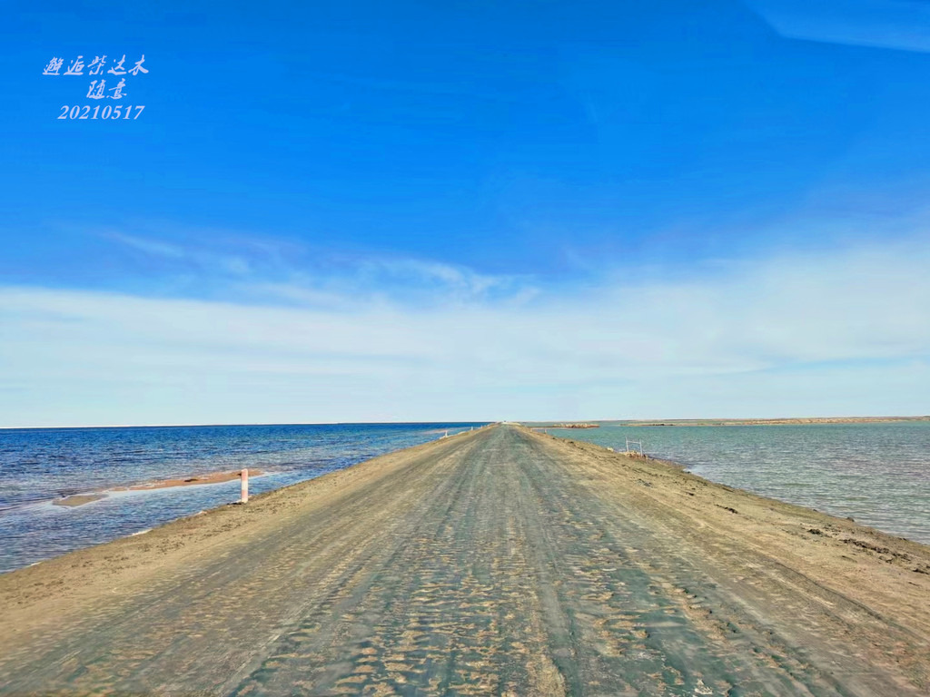 早上沿着315国道继续出发,因为今天要到茫崖住宿,决定先不去乌素特水上雅丹(后来行程改变,错过这个景点),路过西台吉乃尔湖又被称水上公路双色湖,道路硬生生地把湖泊隔成两半,但他们却呈现出不一样的颜色,水一半蓝色,一半绿,没有无人机可能看得不是很清楚,有点小遗憾......