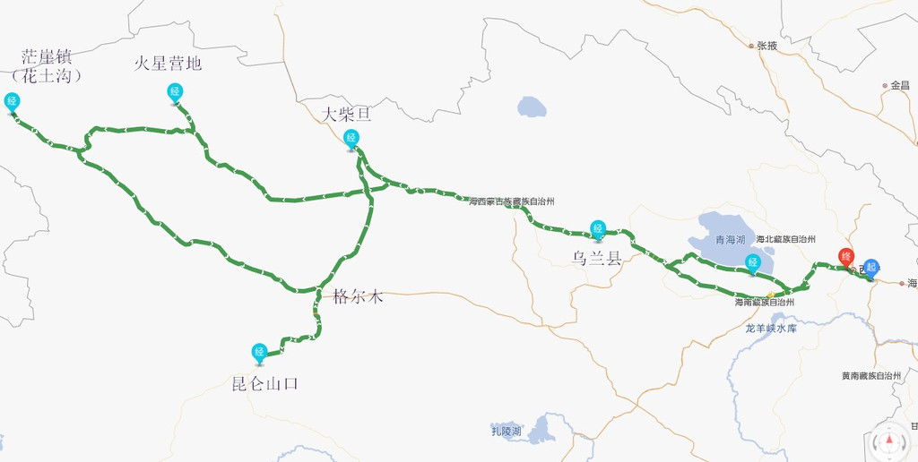 线路概况:西宁-德令哈-大柴旦-芒崖镇-格尔木-乌兰县-西宁