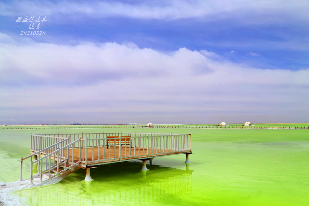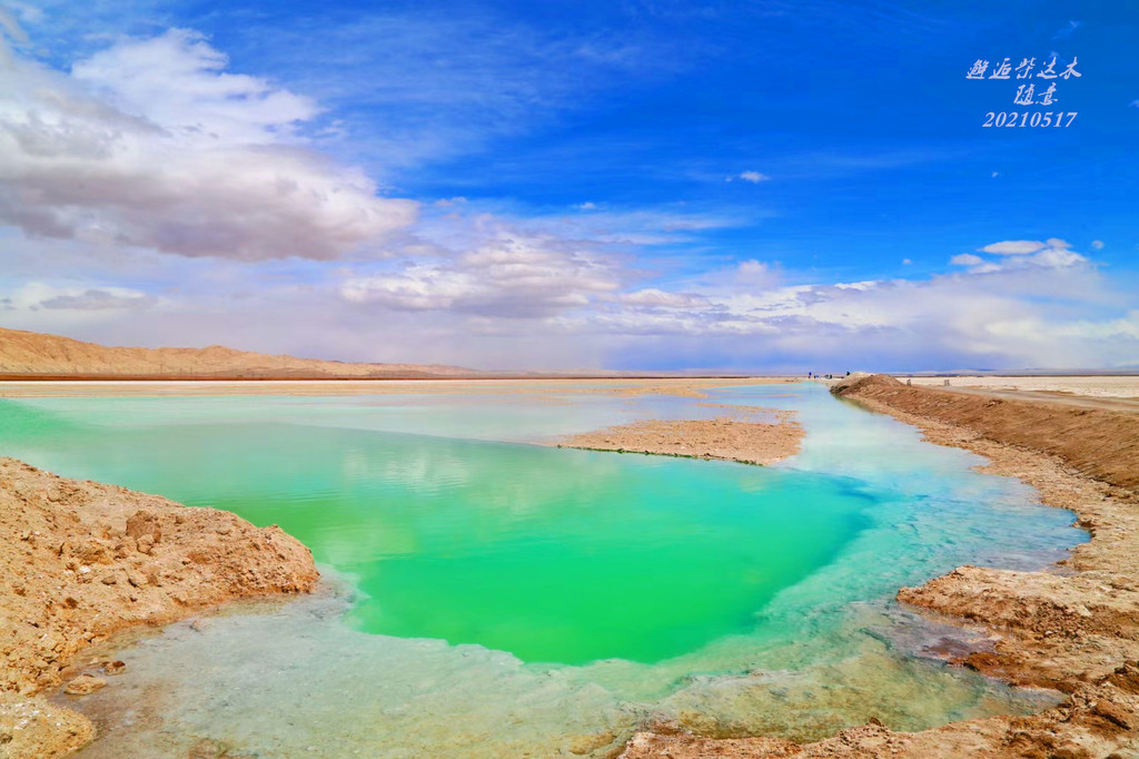 到达大柴旦找了个地方吃钣,把小胖洗白白后,前往翡翠湖,其位于青海省海西蒙古族藏族自治州原大柴旦化工厂盐湖采矿区内。景区现在还没有收费,只收往来区间车的费用,游人也可以选择徒步往返,我们选择坐区间车到最后一个景点,再往回一站一站的游玩