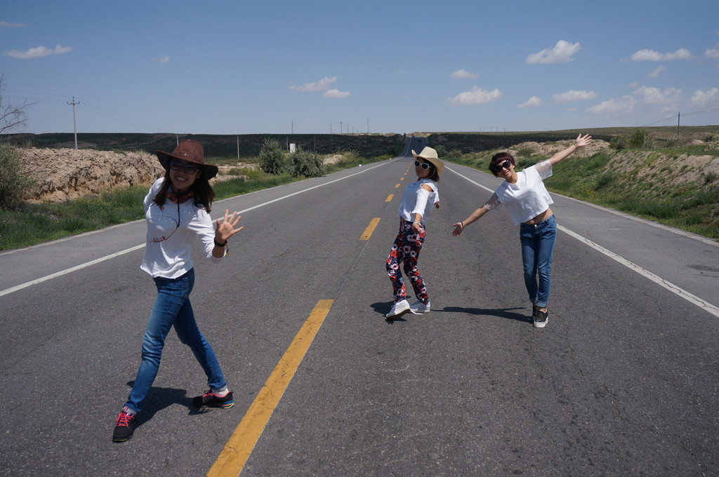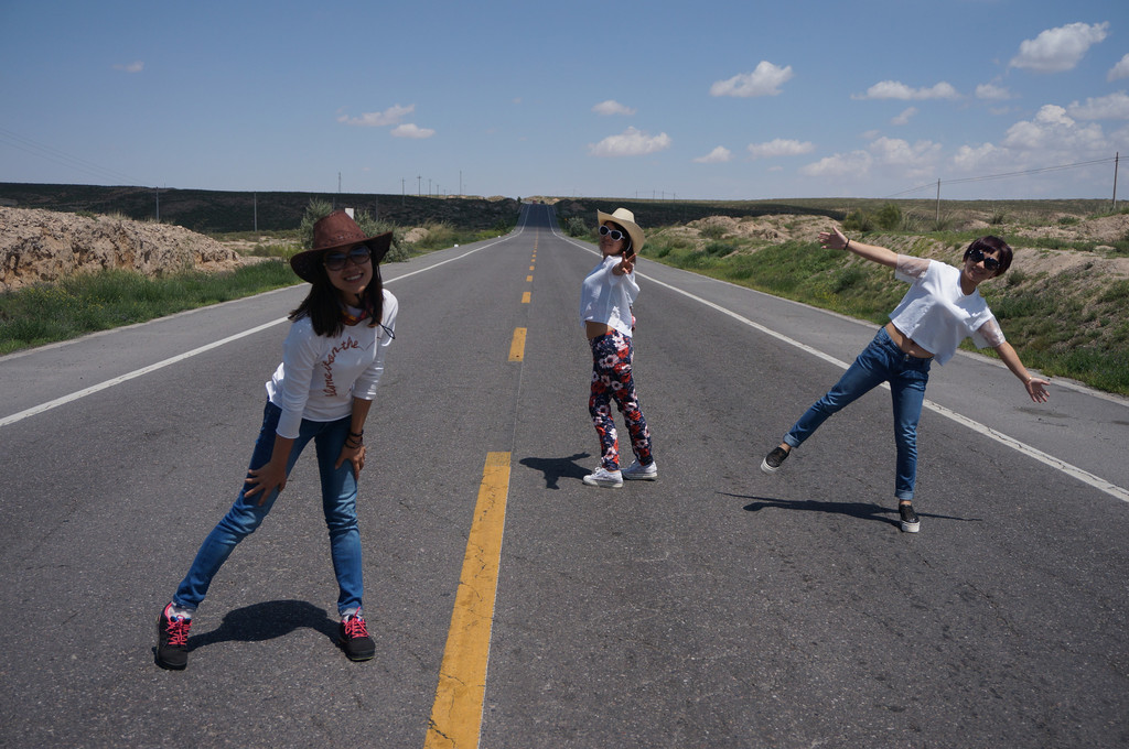 行在路上,,,无边无际戈壁中间的这条路,带给这片空旷里的一线生机