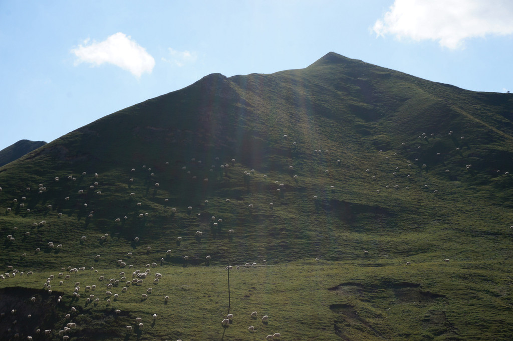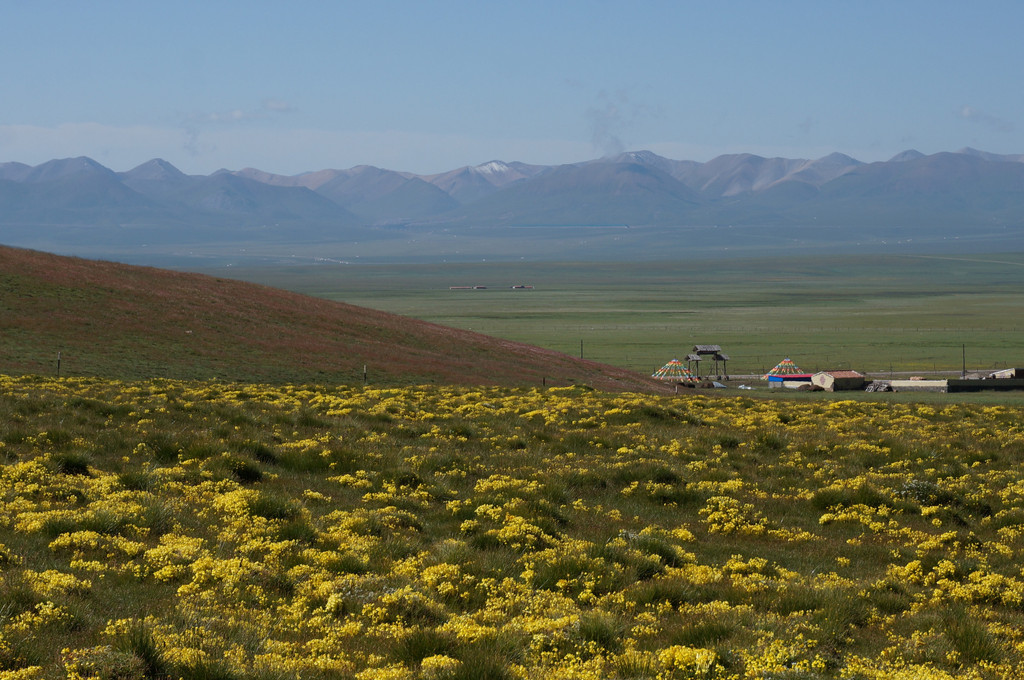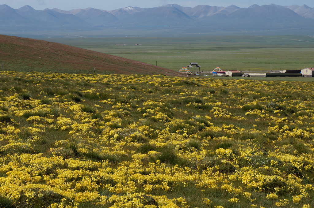 大片的油菜花呈现在你的眼前,远处雪山融化的河流滋润着这片土地,满山的羊群、牦牛,还有来此度假野营的人们遍布其中,山顶是皑皑积雪,山腰是绿绿草地,山脚下是潺潺溪水,河谷的平地搭起的是牧人们的帐篷和游客的烟垂的行装,这里被称为“中国最美的国道”,我看这一点都不为过