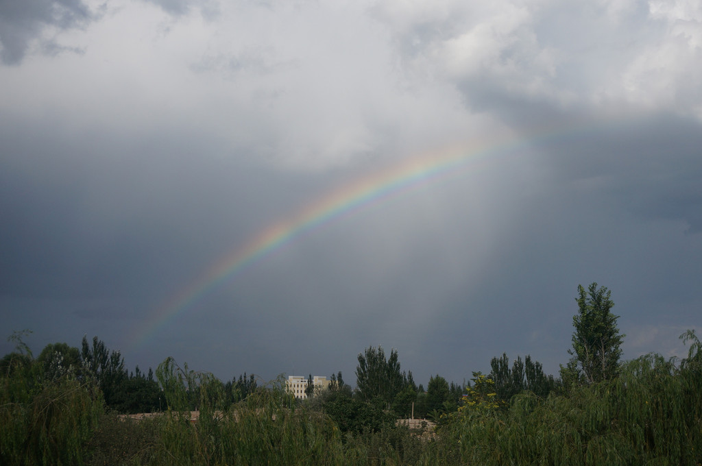 车窗被豆大的雨点拍打着,前方却是一片阳光灿烂~~~~