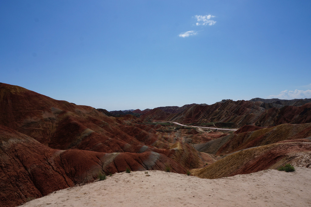 这样的丹霞是在我们上午看到的,据说,日落时的丹霞最美,丹霞丰富的色彩在夕阳日辉的照耀下,更能淋漓尽致的展现她的美~~可是我们是等不到了,不过留下一丝念想也是为一件美事,简单吃过午饭,出发下一个点
