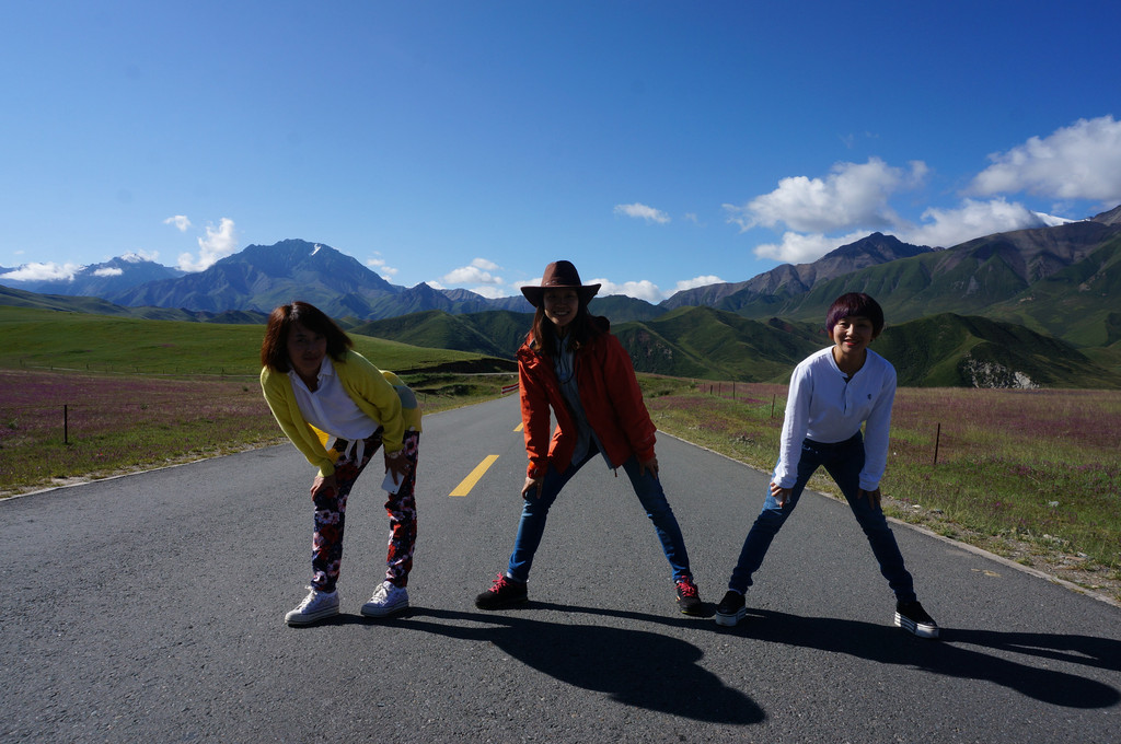 清晨,和昨晚上偶遇的两帅哥一美女一起前往八一冰川,沿着 国道一直行驶,他们是包车,来回400公里,(100多公里的盘山土石路)师傅尽然只要600元,我有些诧异~不过那师傅确实很好,我们人多,路不熟,刚开始还有些担心掉队,找不到方向,没想到,每到一个路口,总能看到他们停车等我们,心里暖暖的,小小的感动!海拔4800,对于我来说,因为个人体质原因,有丝小小的担忧高反~不过一路上的风景让我们眼睛都受累了,一望无迹的花海,连绵起伏的草原,远处若隐若现的雪峰,一切美的不真实,,,,那条路似乎就是我们自家的,尽然没什么车辆,可以尽情飞驰,可是总是能听见轮胎于地面摩擦的尖锐声,不及反应过来,前面的两个男人便一左一右的飞出去了,他们去抓鼹鼠,路边的草地上不停的有肥肥可爱的小鼹鼠跳来跳去,还有兔子,不过他们总是徒手而归,那些小精灵怎么会叫他们抓到~~~~