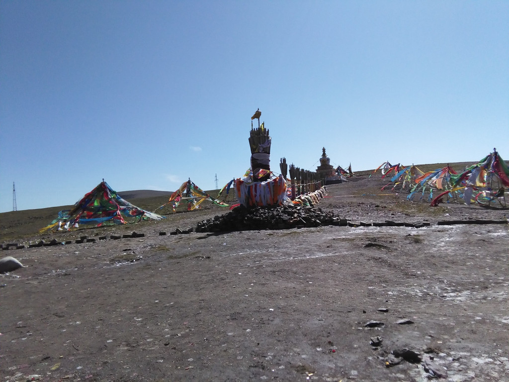 山顶上飘荡着经幡,还有大大小小的玛尼堆 愿它们带给它的信徒幸福和吉祥