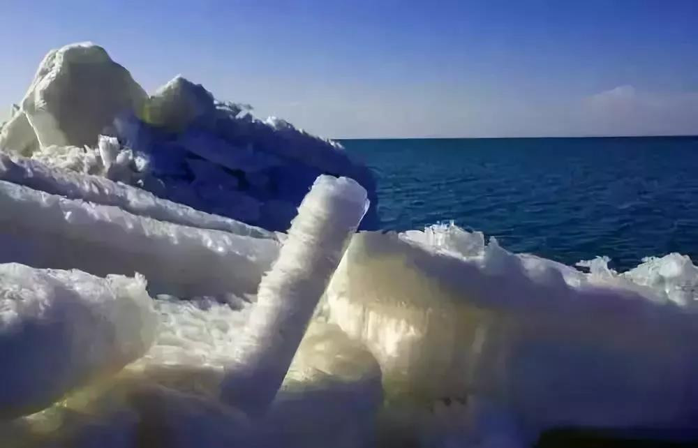 相互挤压,堆积到湖边,并形成多个“冰山。
