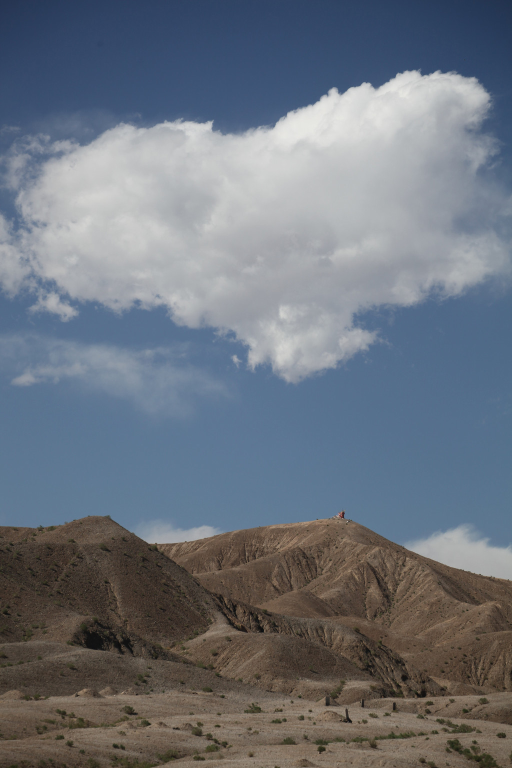 今天一路重复着昨天的盐碱地、戈壁,两旁的山脉犹如一幅幅水墨画。当翻越了海拔3648米的当金山口,景色立马变成沙漠风光。经过阿克塞向敦煌进发,一路都是沙漠相伴,偶尔有一些绿洲点缀。