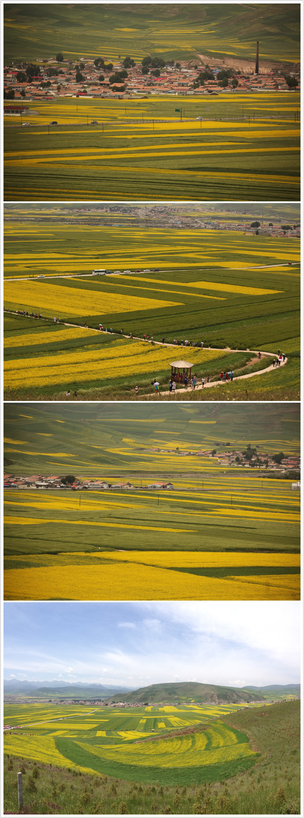今年门源油菜花最旺盛是7月10日-20日,227国道穿过青石嘴镇,可以看到不远处有一座小山,山上有观景台,驱车前往才知道这就是著名的圆山观花台,这里是整个门源最佳观景台——可俯拍360度。于是停车买票上山,果然不同凡响,景色如同上帝之画。