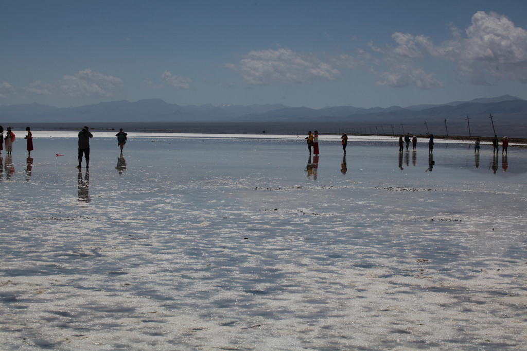 到了盐湖,你才知道什么是奢侈,才知道盐不是用来吃的,是用来踩的、用来堆雕塑的、用来做工艺品的。任何一个脚印踩下去,过一会儿就是一个盐脚印。