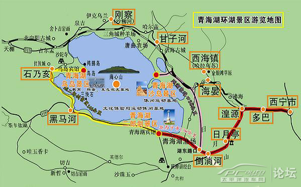 1)南岸的国道G109(倒淌河-二郎剑-黑马河)紧靠青海湖边,可以开车到达湖边,也可以驾车同时欣赏青海湖景、草原山峦,建议游览;