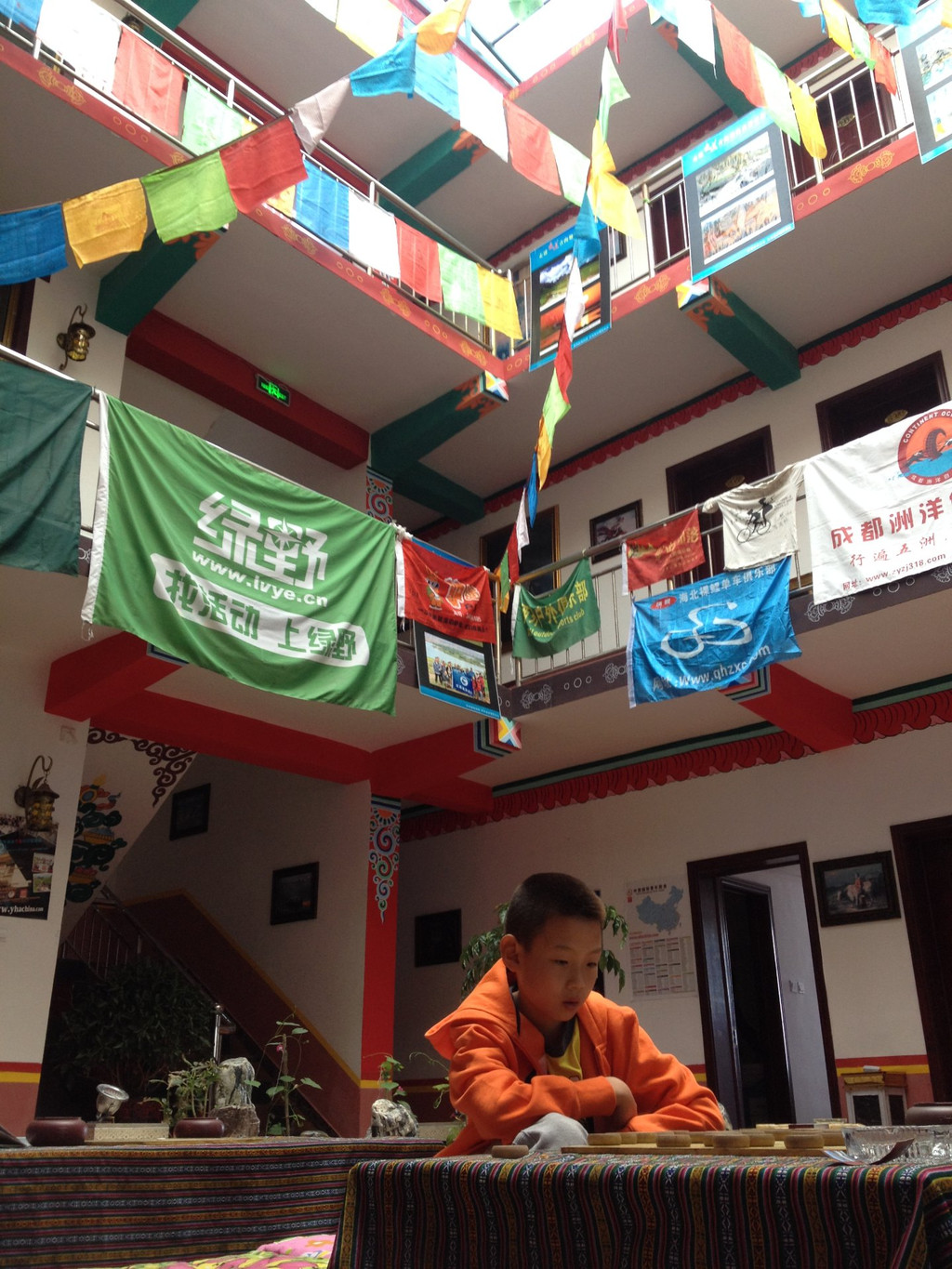 入住的青海湖扎西度假藏式e家酒店,是一家驴友酒店,藏式风格,有不同档次的房间供选择。早餐餐厅的后院正对着广袤的草原和高山,一个字美。由于是第一天,大家都没有洗澡。