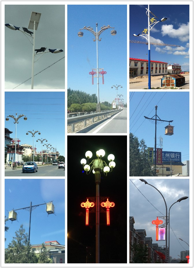 一路各地的路灯非常有特色,具有当地的特点,如牦牛图案、自行车竞技图案、飞天图案等。