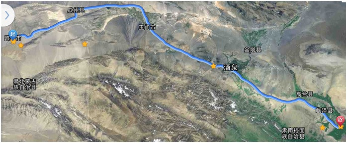 D5-7/16 敦煌-瓜州-嘉峪关-张掖(120公里/1.5小时,250公里/3小时,260公里/3小时,宿张掖)
