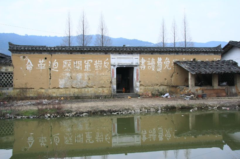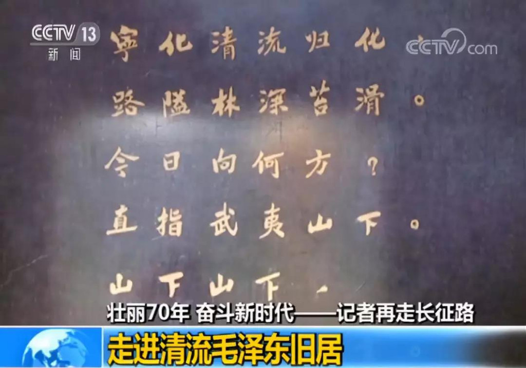 如今这里还尚存留有红军刷写的标语,和毛泽东同志写下的壮丽词篇→