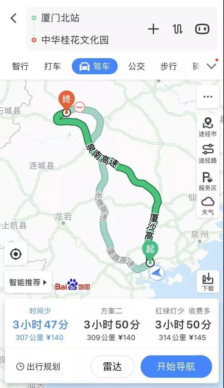 以下为厦门北-中华文化桂花园行程