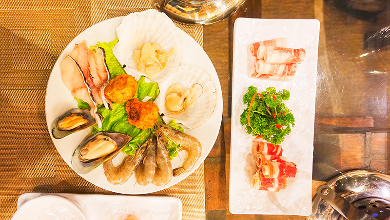 晚餐一家人去试了小火锅,一人一锅,套餐里有蔬菜、肉类、鱼和贝类,猪骨汤头熬得浓浓的,听说蔬菜是岛里自种的有机菜,吃起来很爽脆,加上肉和海鲜完全够吃。如果觉得不够饱,可以加一份主食,不限量滴~