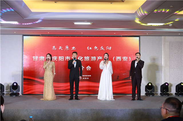 4月14日,在“高天厚土•红色庆阳”文化旅游产品(西安)推介会上,庆阳市“岐黄故里、周祖圣地、红色南梁、民俗庆阳”四张文化旅游名片亮相三秦大地。