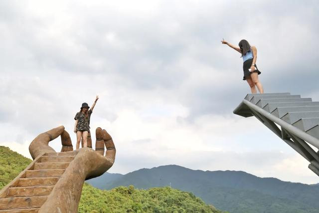 通天神掌:沿着台阶往上行走,整个神掌又如同莲花宝座,五根手指就是护身凭栏,站在掌心上眺望前方,360度全方位无死角的风景尽收眼底,有种君临天下的感觉。置身掌心,顿时有了日月照禅心的感觉。