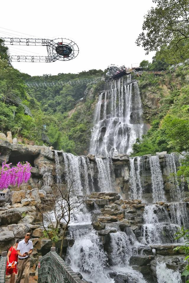 悬崖秋千:16米高度双人秋千、9米高度的单人秋千,矗立于山巅之上,临界于悬崖之边,从平台往外荡出5层楼的高度,顿时有飞一般的感觉,山风在耳边呼啸,眼前瀑布奔涌,脚下万丈悬崖,尖叫声响彻山谷。害怕的我,站在旁边聆听别人撕心裂肺的尖叫声,也是一种享受。
