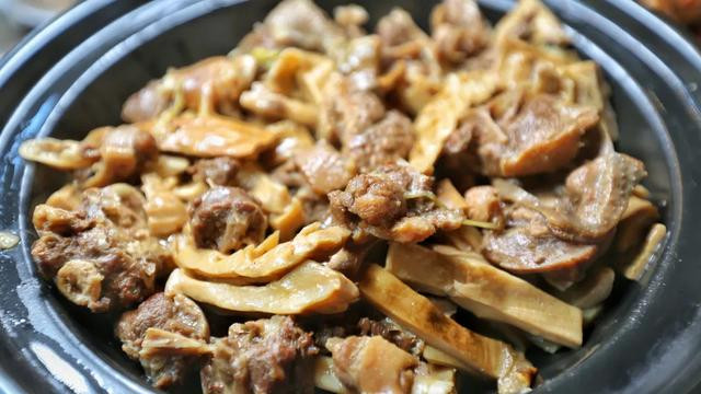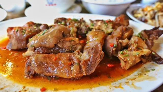 传统的清远特色美食:蒸连州牛肉干、笋焖土猪肉、碌鹅以及原味鸭。