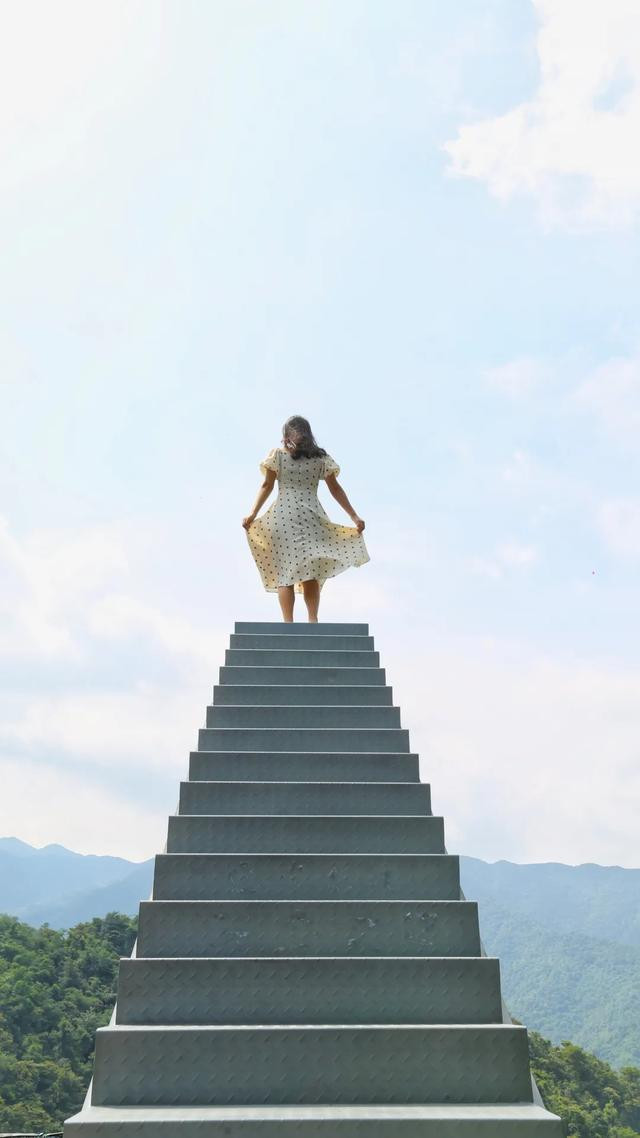 天空之梯:长20米、高16米,整个梯身以蓝灰色为主,向天空延伸,缓缓走上阶梯,仿佛要一步步走向天空之城。钢结构的梯子设在在玻璃桥头,下设安全围网,防止不慎落下的游客。如果想要拥抱蓝天白云,其实只需要一架天空之梯。网红打卡点,吸引了大量的游客前来拍照,但为了拍到一张美照,许多恐高的小姐姐们也是豁出去了,只有慢慢的用手摸爬着梯子上去,真的是太拼了。