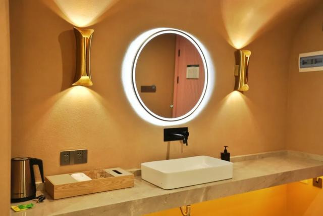 客房宽敞明亮,简约风格的设计;有独立的电视区,配有沙发;洗手台前的圆镜子自带触感的灯光;干湿分离的浴室,方便使用。房间设有观景露台,远近的山光水色、景致一览无遗。