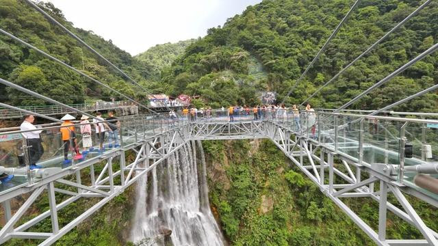 云天玻霸,又名玻璃大峡谷,是世界首个集悬空玻璃平台、玻璃悬廊、玻璃栈道、玻璃吊桥、玻璃天镜、玻璃直播间6位一体的玻璃观光组合,悬浮于古龙峡的群山之巅、瀑布之上,从悬崖绝壁凌空而出,给人气势磅礴而又和谐统一的观感。