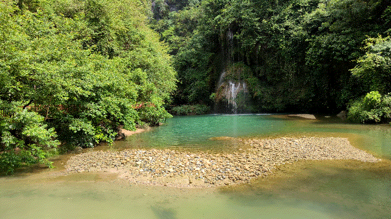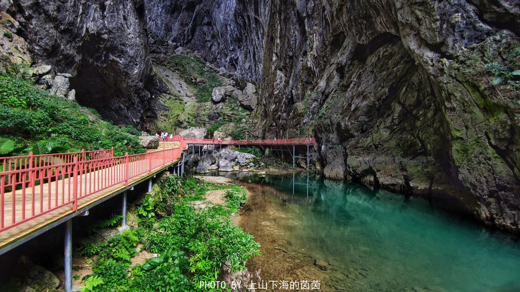 冰凉清澈的地下河从溶洞穿流而过,在洞口跌落成一汪碧玉般的深潭,这就是青龙潭。