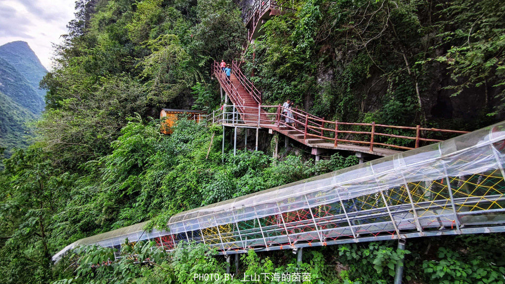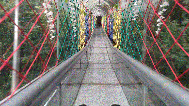 体验过天云渡玻璃吊桥的惊心动魄,陶醉于灵鹫宫的五彩斑斓,接下来可沿着飘渺峰蜿蜒的步行道下山。不过我更推荐在玻璃滑道中体验一把丛林穿越的速度与激情哦!