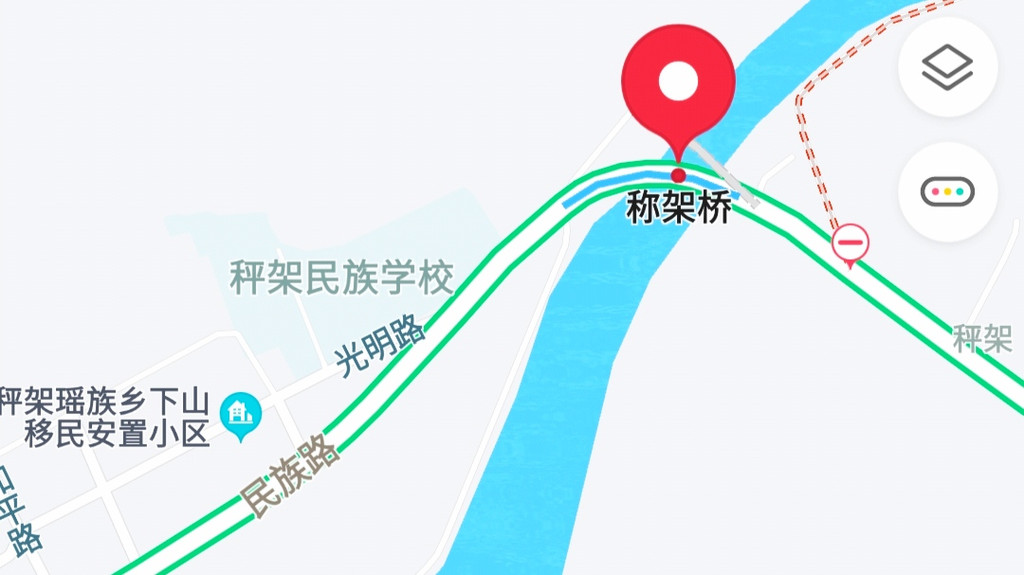 全场88.8米、宽8米、2019年6月才竣工的英明善美康桥是一个目前在各种导航软件中都找不到的存在,要准确到达的话可以用旁边的“阳山 秤架桥”进行定位。
