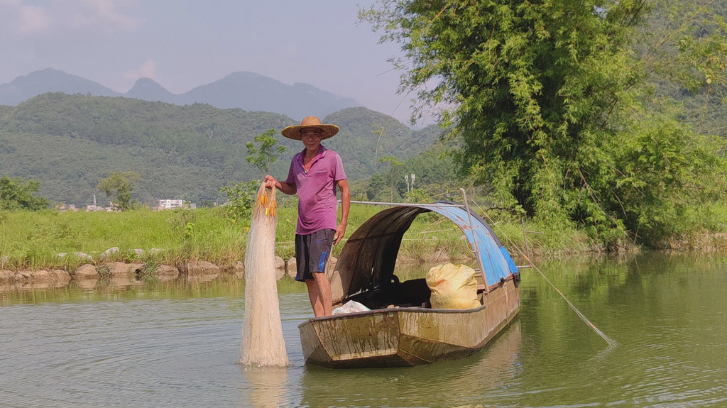 游船子在景物倒影清晰可见的天然河道中行驶,两岸远处群峰连绵不绝,近处是青翠欲滴的竹林、世外桃源般的村庄,与撒网渔夫的偶遇,不经意间身旁飞过叫不出名字的鸟儿……绘成了这幅华南最具诗情画意的山水画卷。