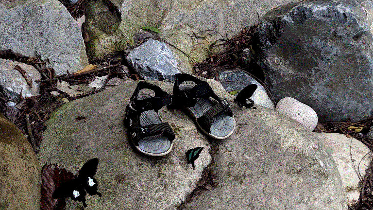 脱下鞋子将疲惫的双足泡入清凉的溪水中,尽情享受被蝴蝶环绕飞舞的感觉。