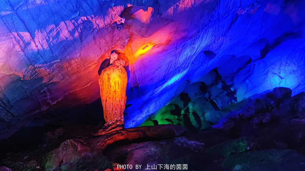 这个位于山腰的喀斯特溶洞”自带仙气“,每当气温骤降洞口便会呈现吞云吐雾的神奇景象,传说那是神仙在洞里隐居修仙所吐出的真气。灵鹫宫内曲径通幽,大自然的鬼斧神工打造了一批形态各异、姿态万千的石笋、石柱、石幔、石瀑、石钟笋,像送子观音、像美女、像将军、像梯田、像峰林、像金钟、像银簪……在精心布置的彩灯”加持“下,神秘中满眼流光溢彩,必须用手机夜景拍照模式来打卡!