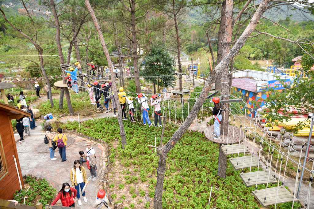 上山前在丛林的空中穿越热热身,超级刺激惊险,小朋友也可以玩,即考验胆量也考验手脚协同的能力,需要手脚并用才能走到终点。行走在森林氧吧,身临多个项目关卡,当你逐渐击破项目,最终抵达终点的那一刻真的特别有成就感。