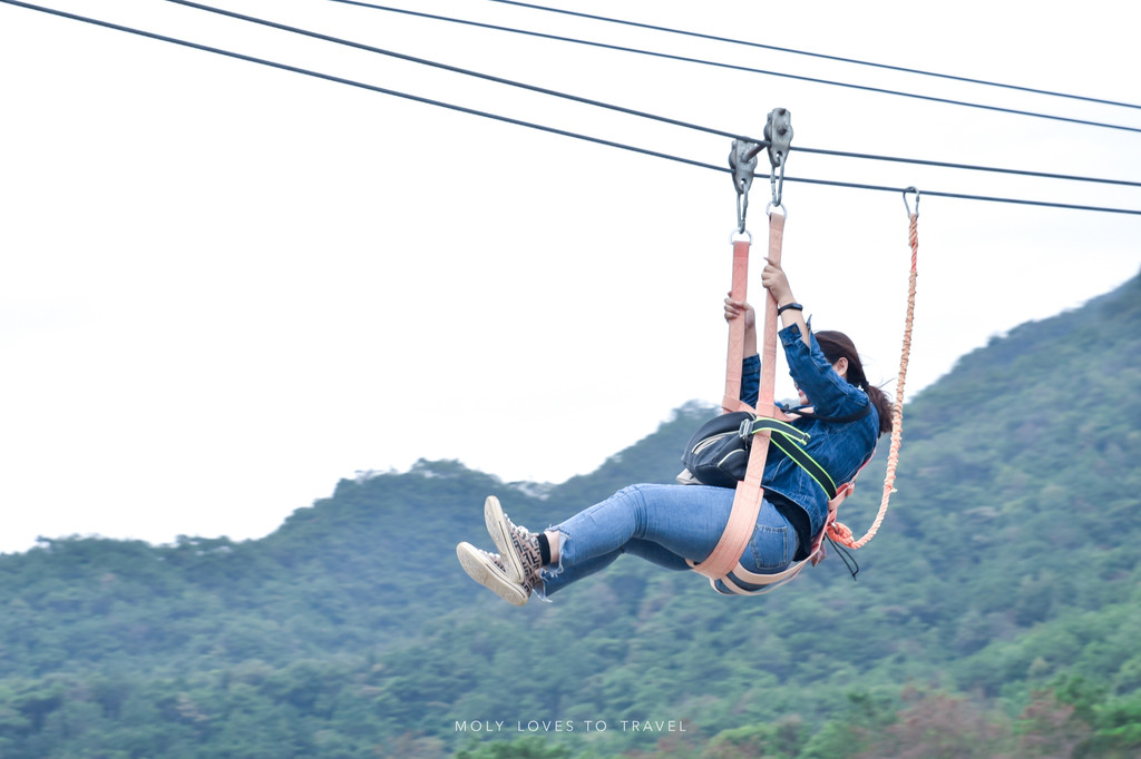 这个项目玩之前各种担心害怕,当离开地面顺着索道飞起来那一刻,真是特别刺激无比。在空中飞起来了,换个视角环顾周围,风景变得更加美了。
