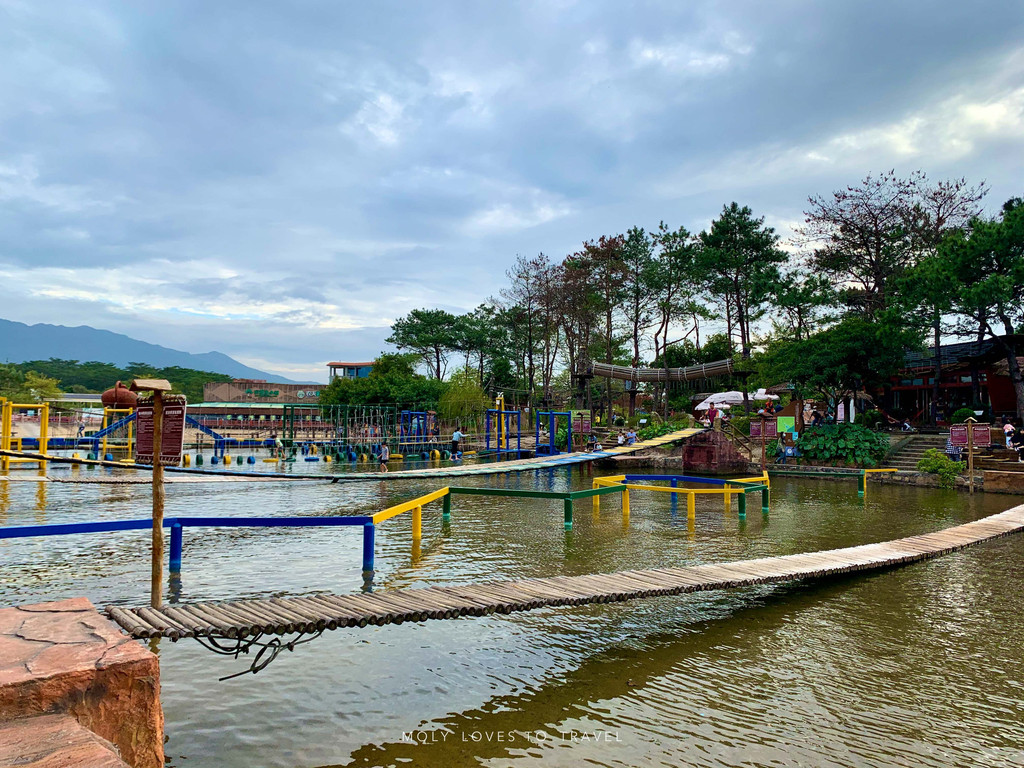 第一天:主要在山下游玩,玻璃漂流、高空飞索、水上拓展、多人秋千、摇摆桥等惊险又刺激。