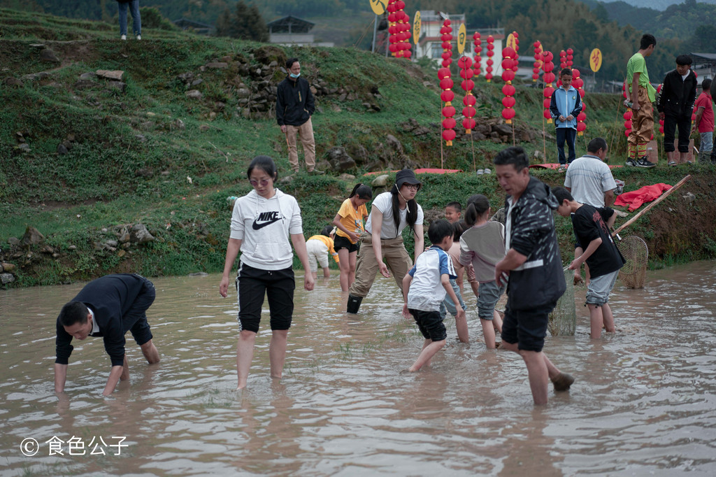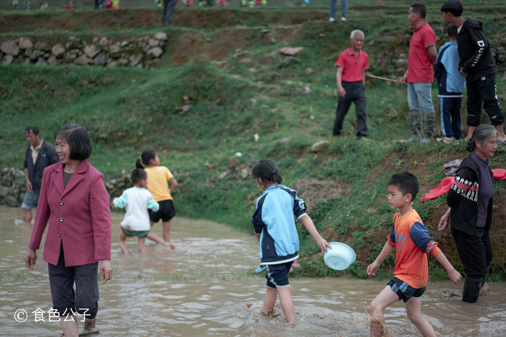 但是,最好玩最热闹的当属抓稻田鱼了!别看稻田的水浅浅的,活蹦乱跳的稻花鱼可不好抓,浑浊的水里看不到它们的身影,就算它从脚边游过,你也很难抓住!不过,这时候,最重要的是男女老少一起参与的快乐,哈哈哈