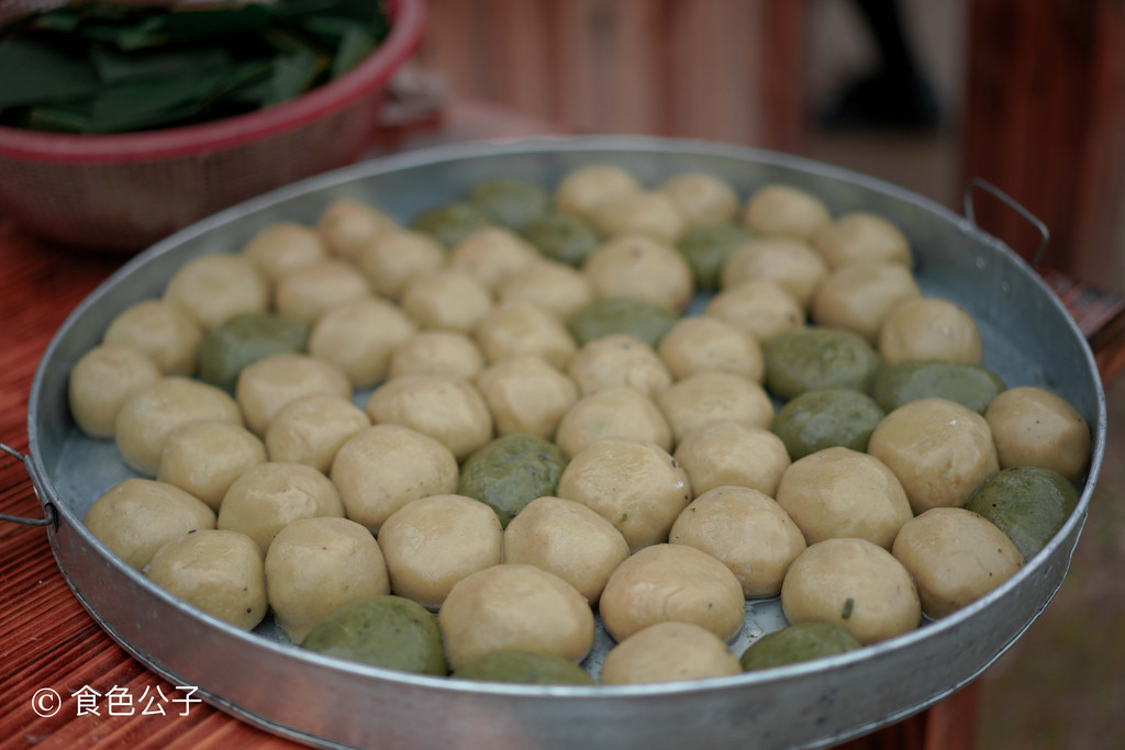还有现场制作艾叶果,当地人成为连山大汤糍,,糯米粉为皮,馅料有甜有咸,无论是喜欢吃甜的还是喜欢吃咸的都可以满足你,而且是免费的哦。