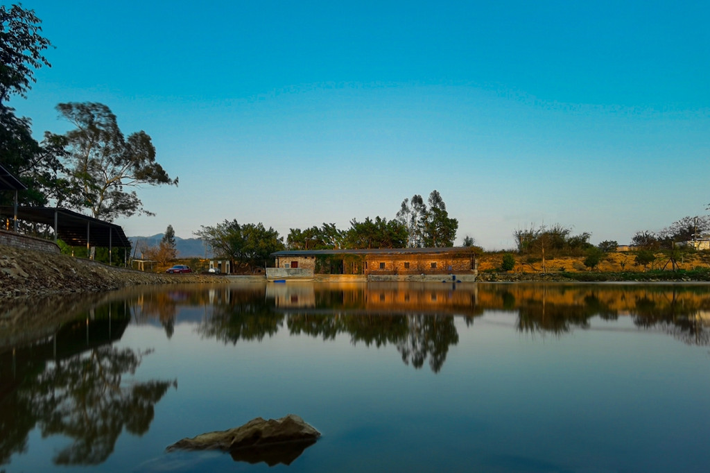 其实,整个农庄面积很大,尚未完全建设起来。老板娘说:“将来会配套星空客栈和露营设施。三年疫情,害人不浅呀,而且去年北江溃堤,淹到农庄,损失也不小。”老板娘是个有故事的人,原为某企业高管,整天飞来飞去。大概厌倦了都市的灯红酒绿,选择在井塘营建农庄,偏安一隅,享受田园牧歌。