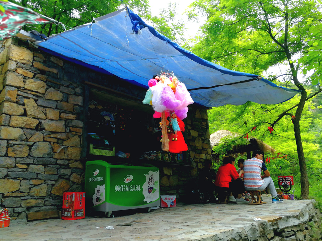 这是路途中间经过的一个移民村,名字叫窝铺村。因为村里有一个水库,四面环山,景色不错,就下来顺着湖边走走