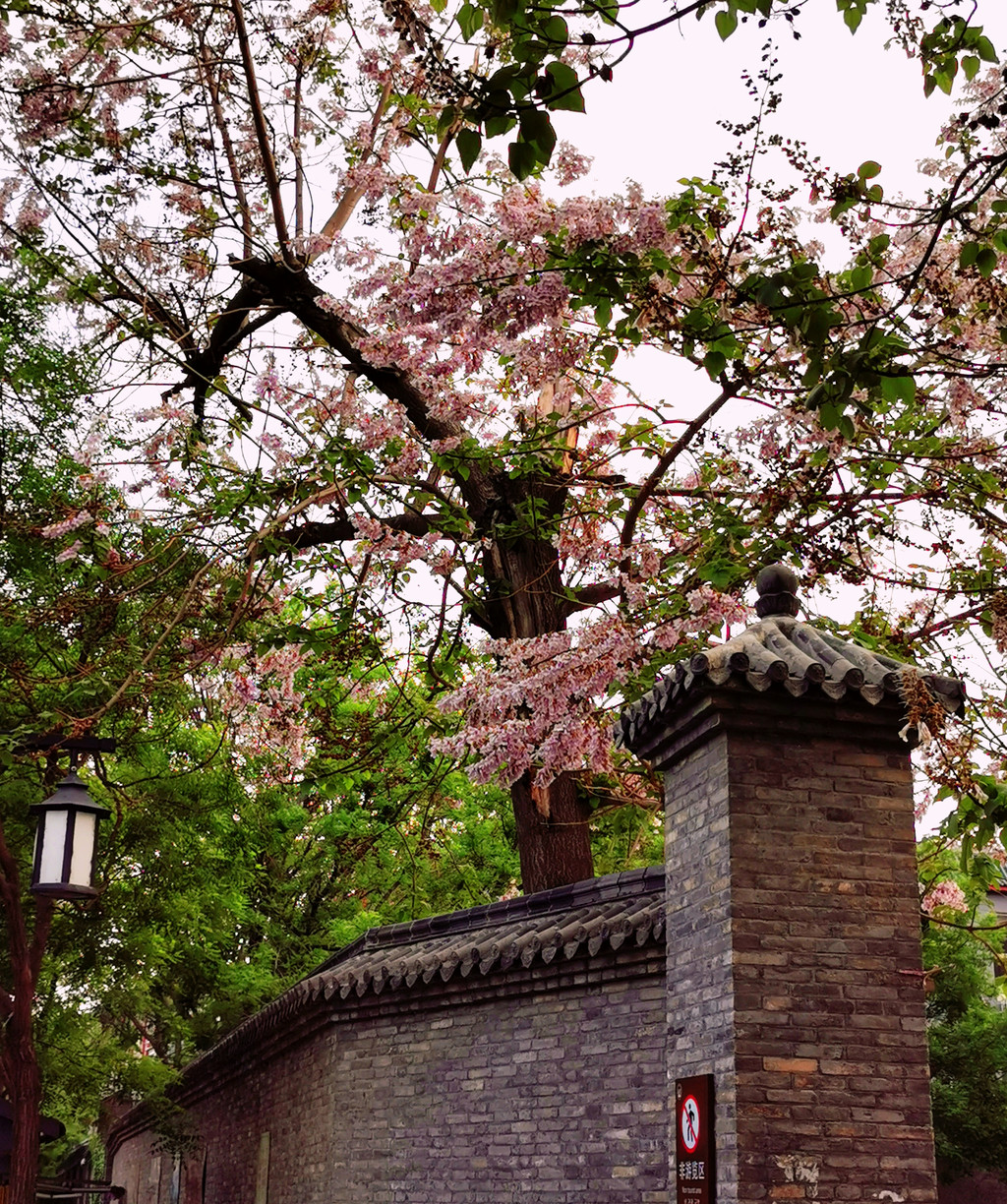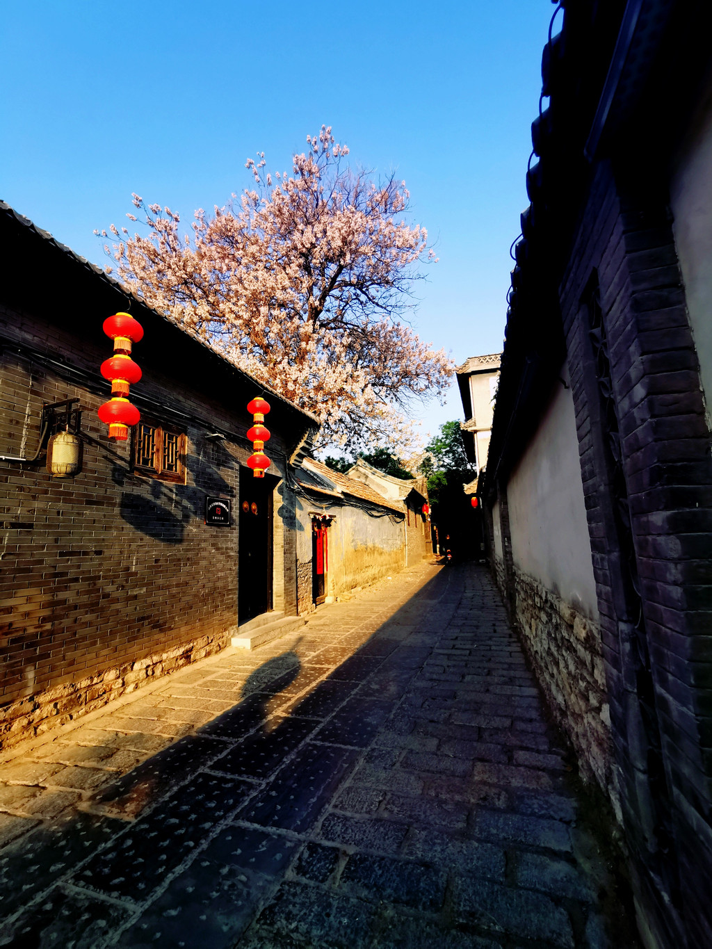 古镇周围布满了高大的梧桐树、槐树,正赶上梧桐花与槐花开的最盛放的时节,稠密的花儿令人心醉神迷的