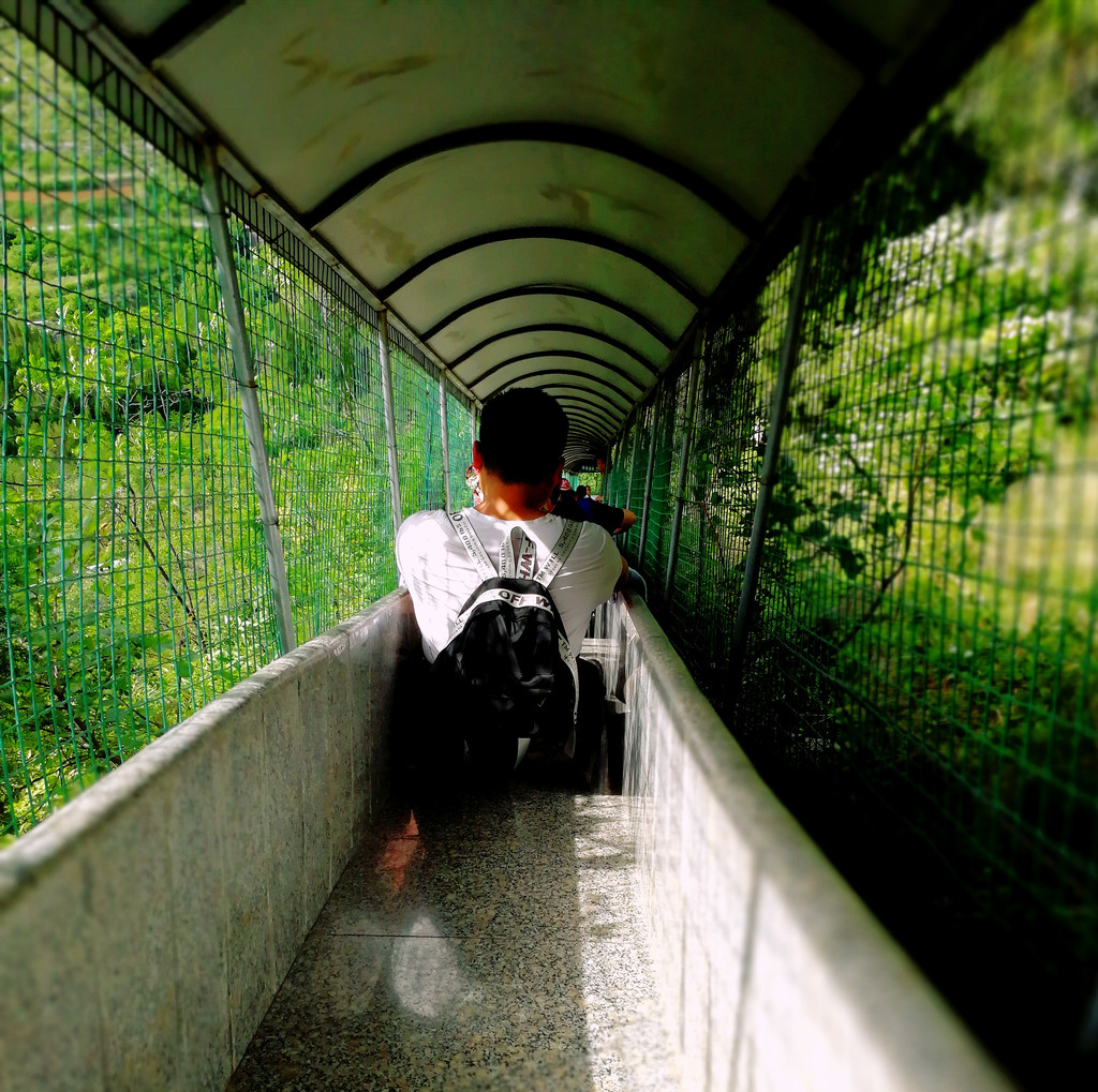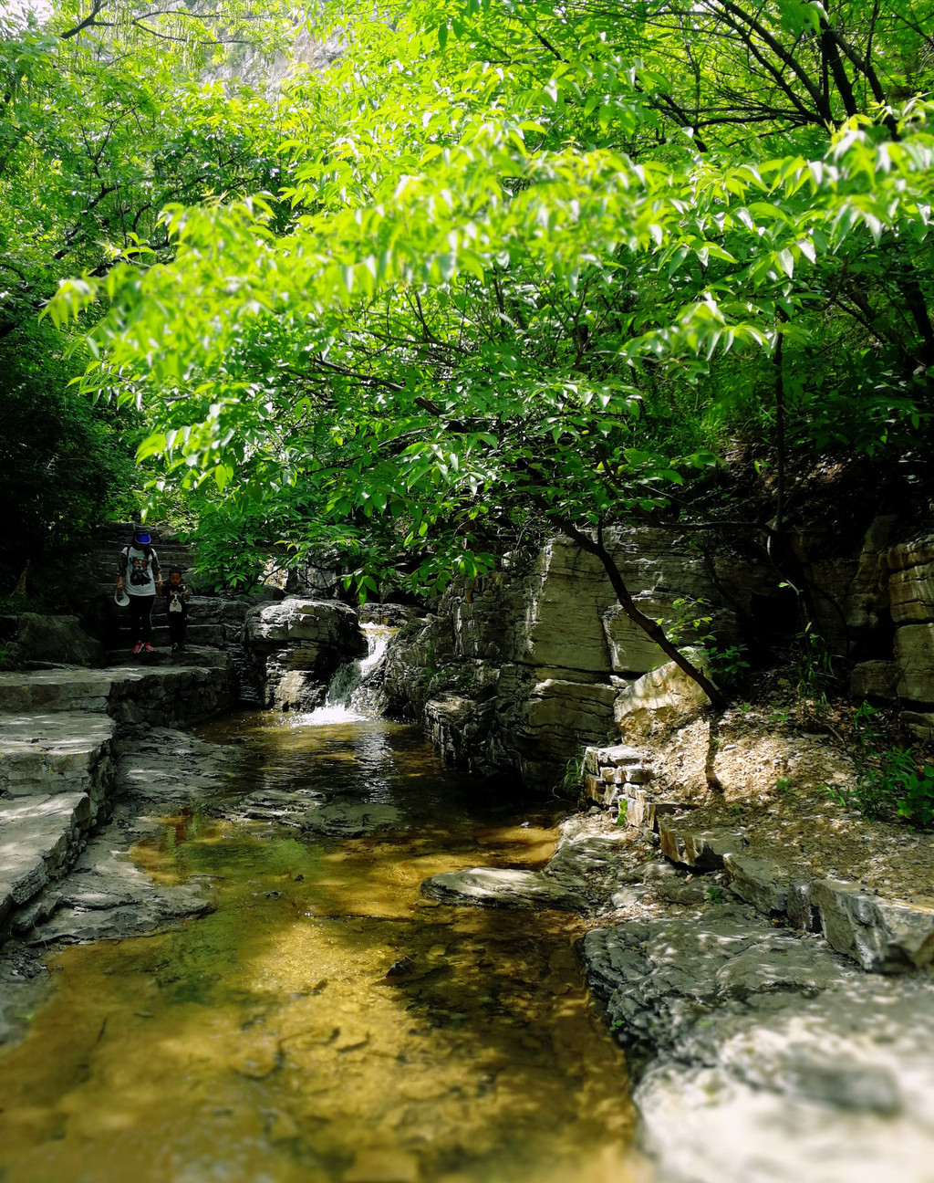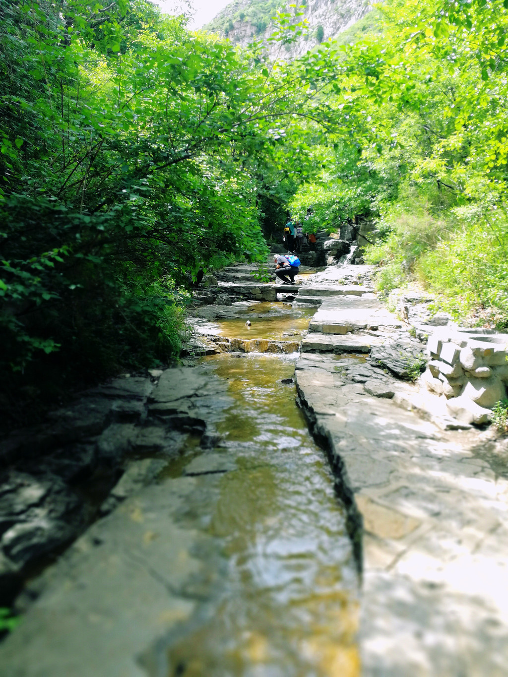 谷底小道有缓有急,山势大开大合。在陡峭的地方,青山分立两侧,断裂的削面与地面近于垂直,人在峭壁悬崖之下,会被大自然的这种张力折服。