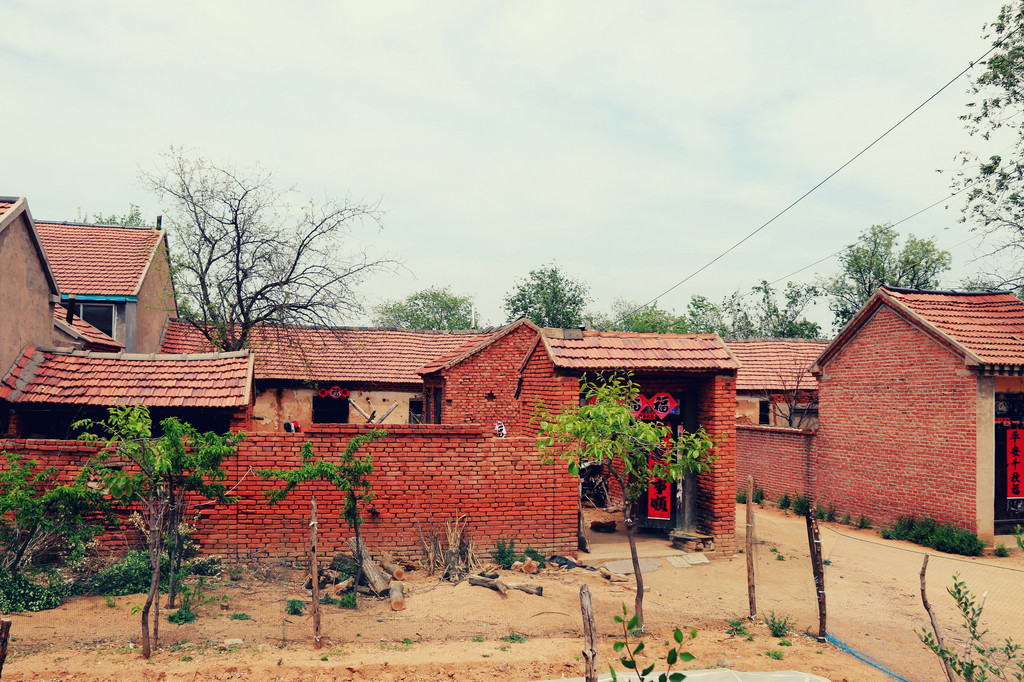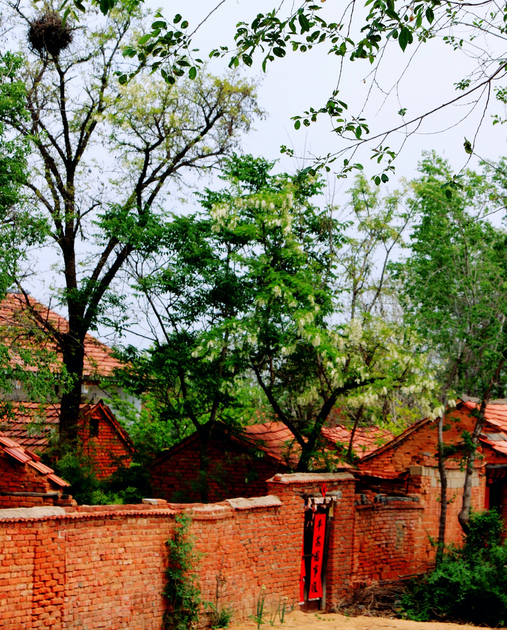 红砖,红瓦的村居建筑,在绿树的掩映下增了一丝恬静。