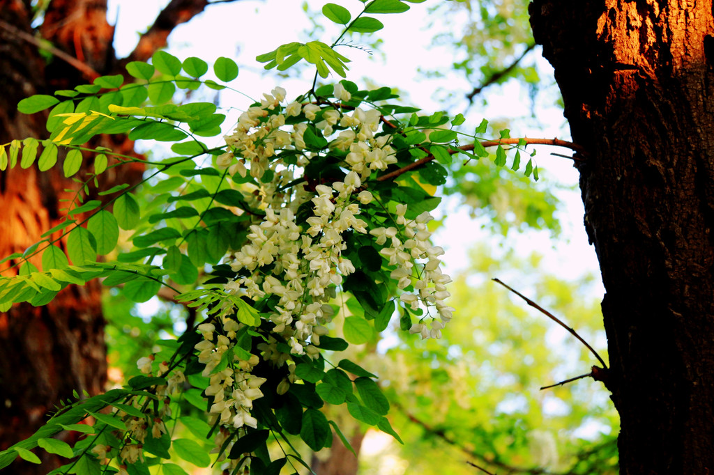 小时候,我尤其喜爱从林子里折下新鲜的槐花,直接送入口中,淡淡甜香味充满了童年的记忆