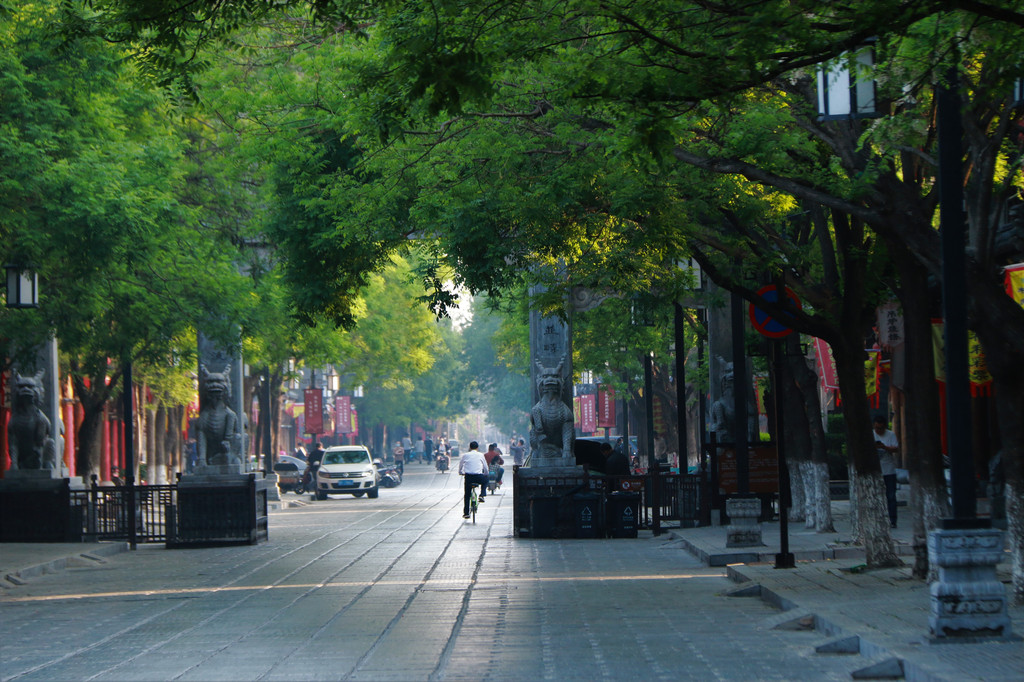 走入古城街道上,此地居住的老人在这里遛弯散步,清洁的大爷也开始了洒扫。