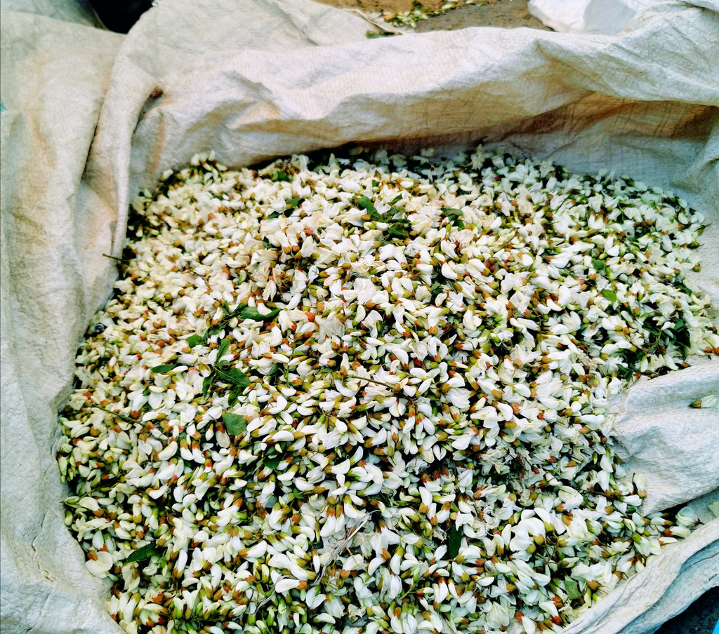 遇到有一老人摆摊卖槐花,我上前询问,老人语速和缓的跟我介绍槐花的各种吃法与做法