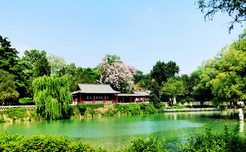 很漂亮的一个公园,里面山水环绕,亭台也多